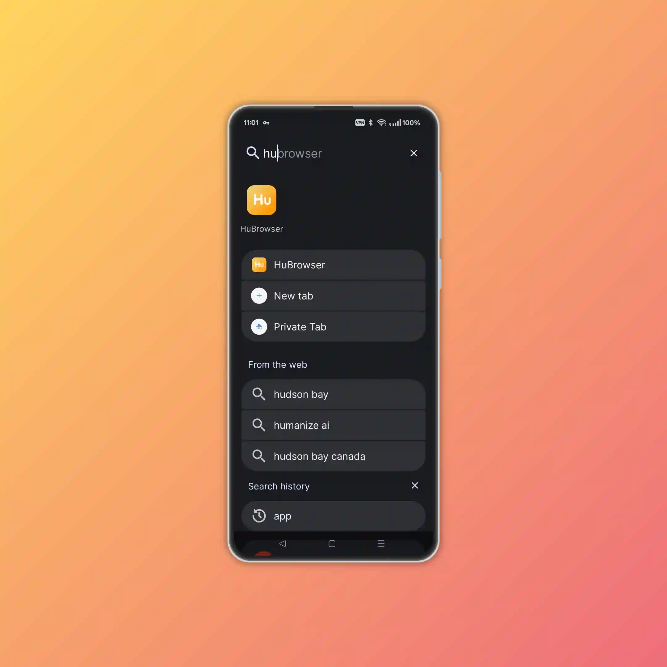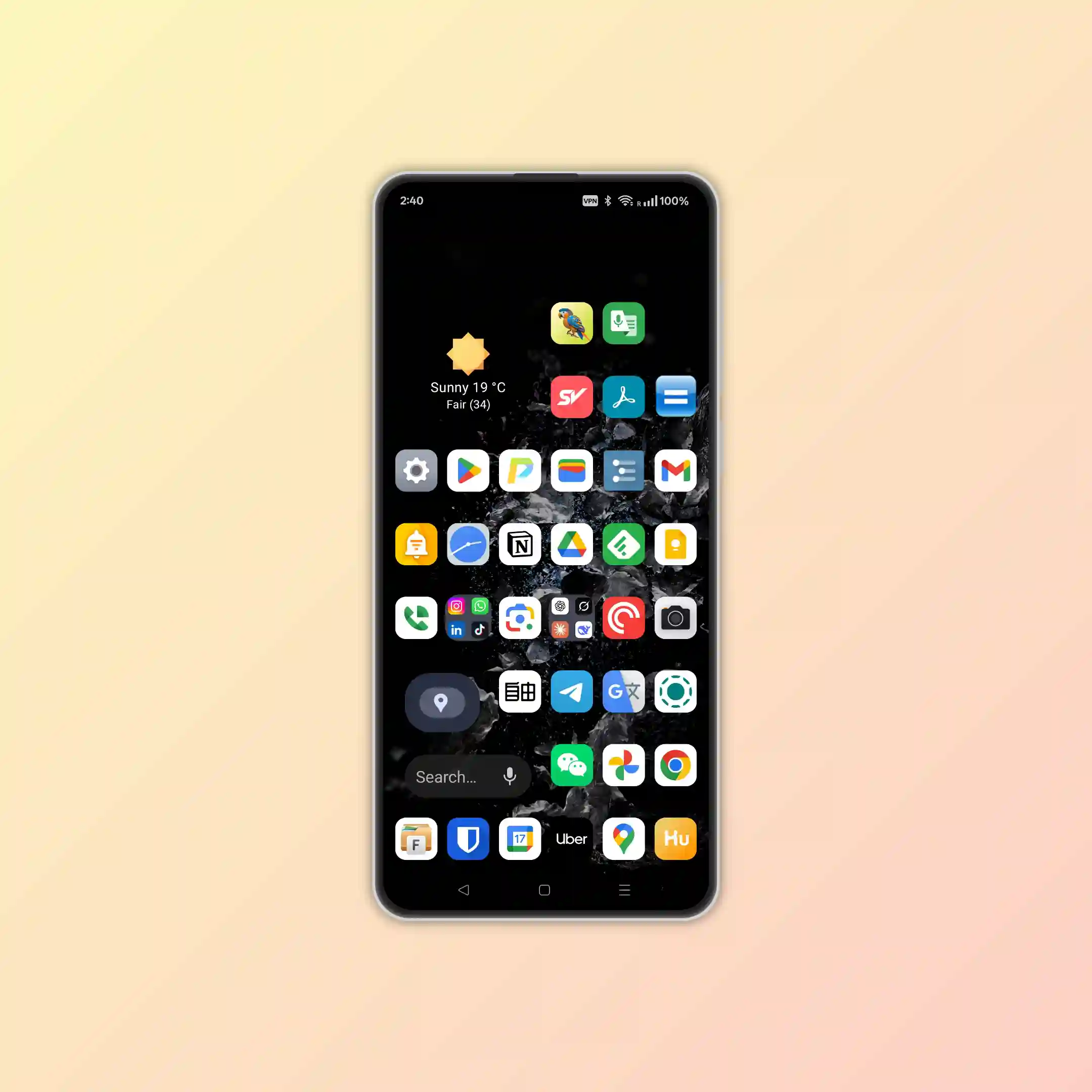 - Swipe up → search / drawer